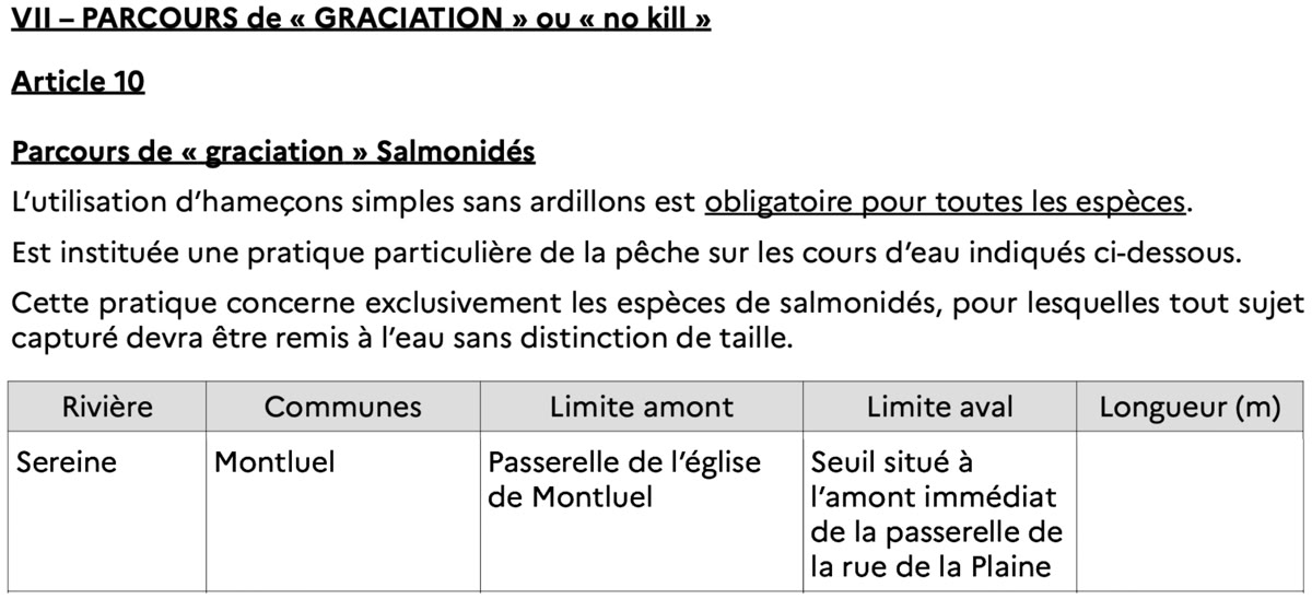 Extrait de l’arrêté préfectoral règlementant l’exercice de la pêche dans le département de l’Ain en 2026 :